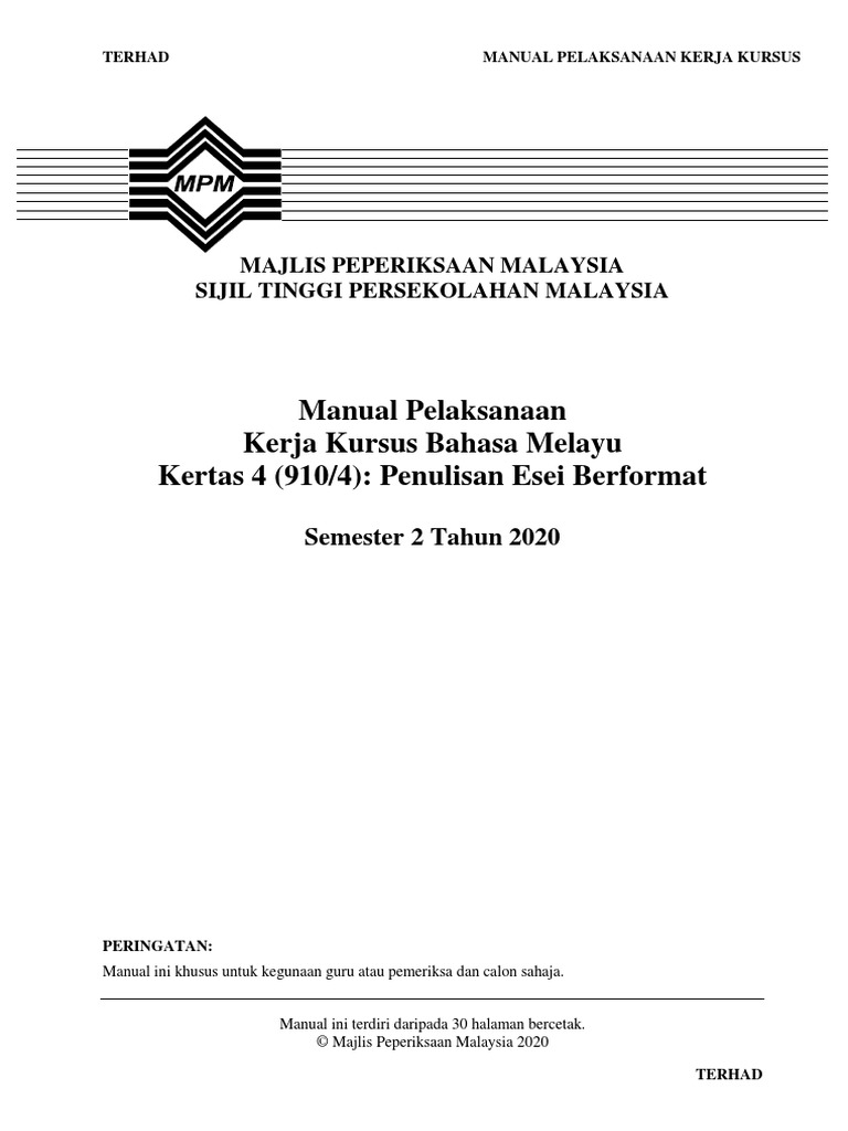 Bm Manual Pelaksanaan Kerja Kursus Semester 2 2020 Pdf